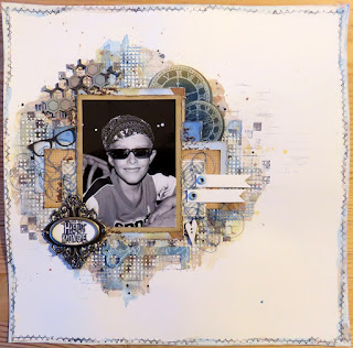 Lovely layers and colours on your lovely page. Your son looks super cool in those sun glasses.