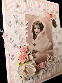 SvarSlettAbsolutely lovely! Your card has a softly textured look which is so perfect with the sweetest ever focal image. Doesn't she look so darling all wrapped up in fur. Thank you so much for sharing with us at Double D!