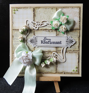 I have not made many bridal cards and those I've made earlier have been of a completely different type. Therefore I thought that I would try something new. I have not made cards before with ribbons this way :)